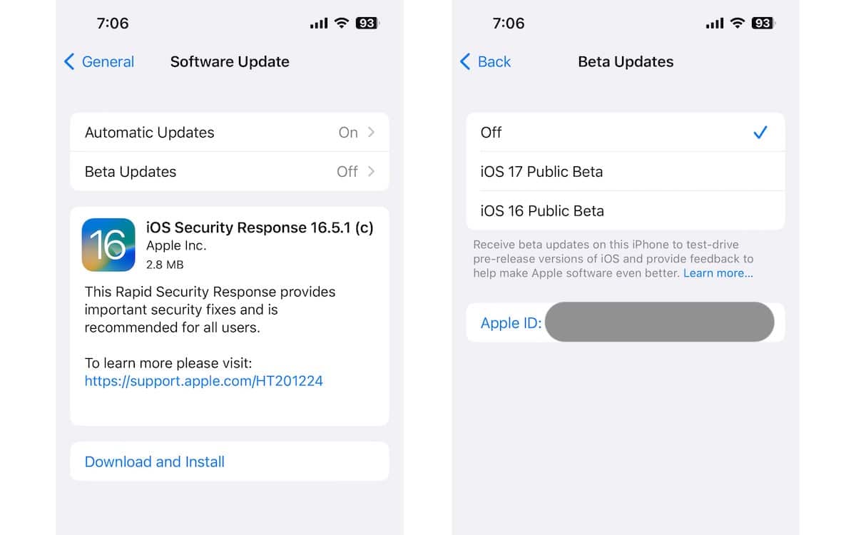 - Toque el ícono "i" al lado de Actualizaciones Beta.