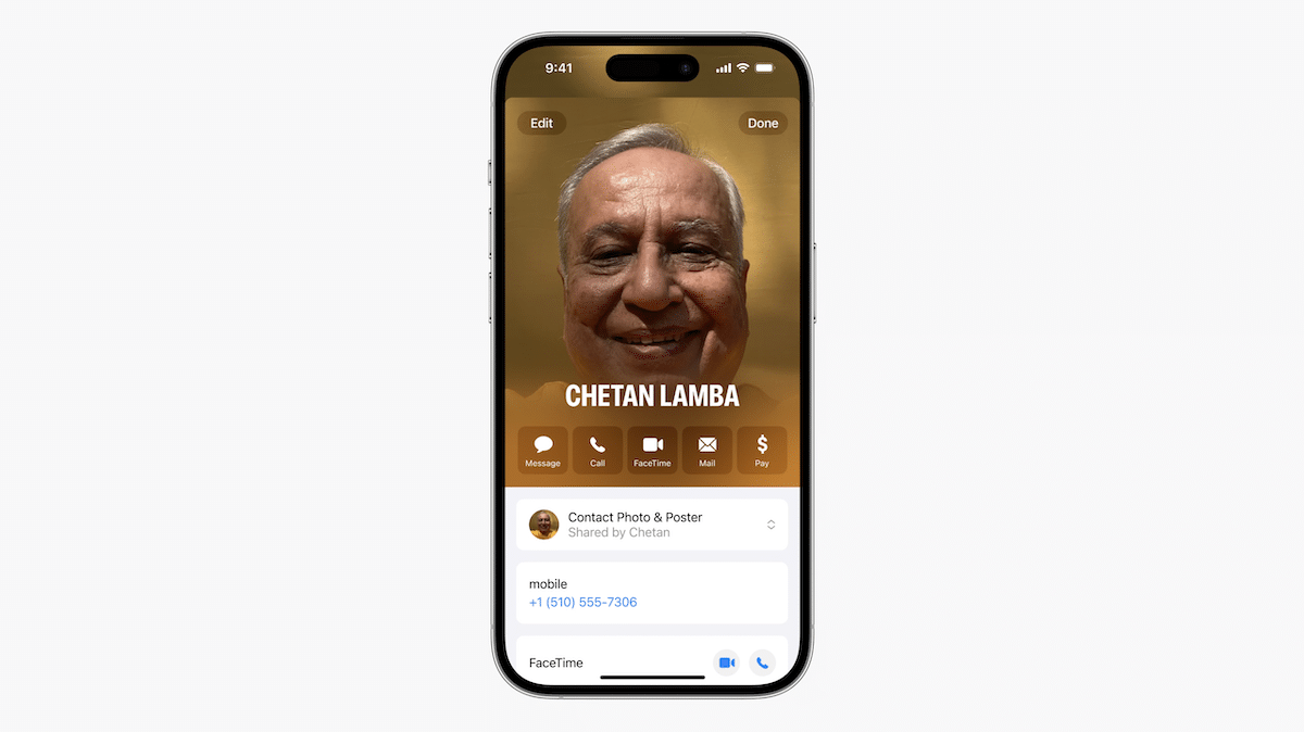 Los usuarios tendrán la libertad de personalizar su póster de contacto como la pantalla de bloqueo de iOS 16 usando una foto o memoji, eligiendo la fuente y el color de su nombre y aplicando efectos a su foto o al fondo, incluido el efecto de profundidad. El póster de contacto admite texto vertical en chino y japonés.