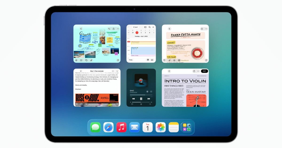 Apple finalmente ha entregado lo que los usuarios avanzados del iPad estaban pidiendo: verdadera multitarea al estilo Mac. Con iPadOS 26, el iPad recibe su mayor actualización de software en años. Ahora puede cambiar dinámicamente el tamaño de las ventanas de las aplicaciones, usar una barra de menú adecuada y aprovechar un sistema de ventanas completo que parece sacado directamente de macOS. El nuevo diseño “Liquid Glass” brinda una apariencia translúcida a los botones, menús, íconos y elementos del sistema en toda la interfaz, agregando una sensación moderna y unificada al sistema operativo.