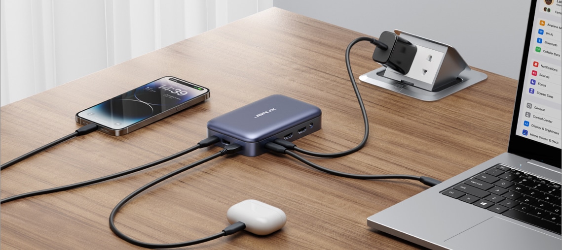Obtiene 12 puertos que pueden resultar útiles cuando su trabajo lo exige. La mejor parte de los dos puertos HDMI y el puerto Display es que ofrecen una resolución 4K a 60Hz. Además, el puerto de salida USB-C ofrece carga PD de 100 W. Encontrar tantos puertos en una estación de acoplamiento que también sirva como organizador no es fácil.