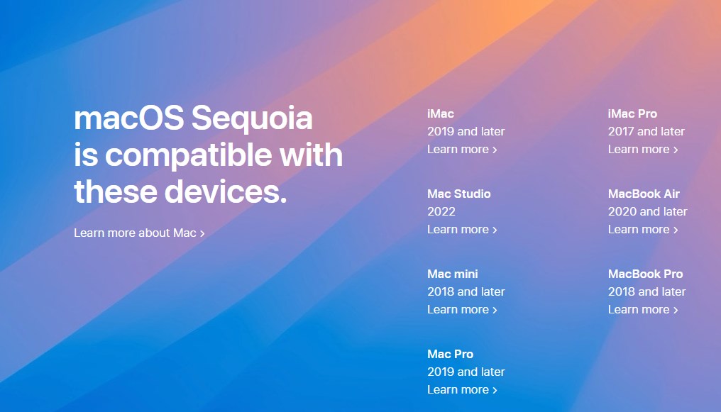 macOS 15 Sequoia es compatible con los siguientes dispositivos.