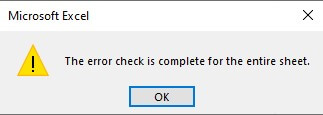 - Esto escaneará la hoja completa para encontrar el problema en las fórmulas. Si no hay ningún problema en la hoja, verá el mensaje de verificación de error completa.