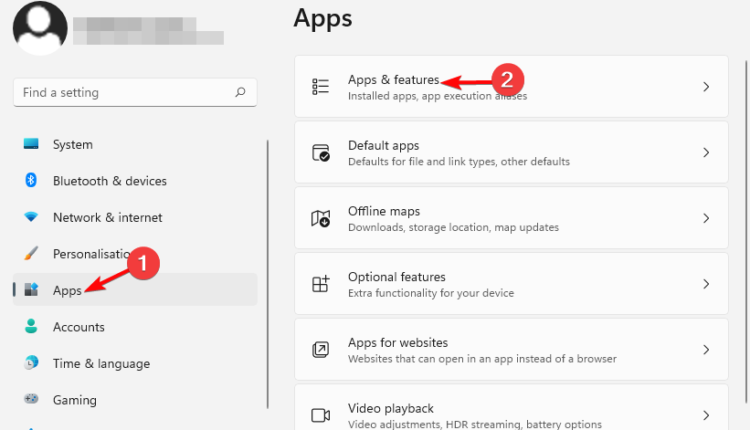 - Próximo. hacer clic enAplicacionesa la izquierda y luego haga clic enAplicaciones y característicasA la derecha.