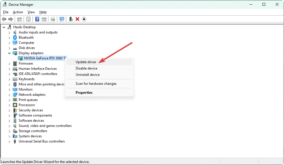 - Haga clic derecho en la tarjeta gráfica y luego haga clic en Actualizar controlador.