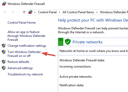 9. Deshabilite el firewall de Windows