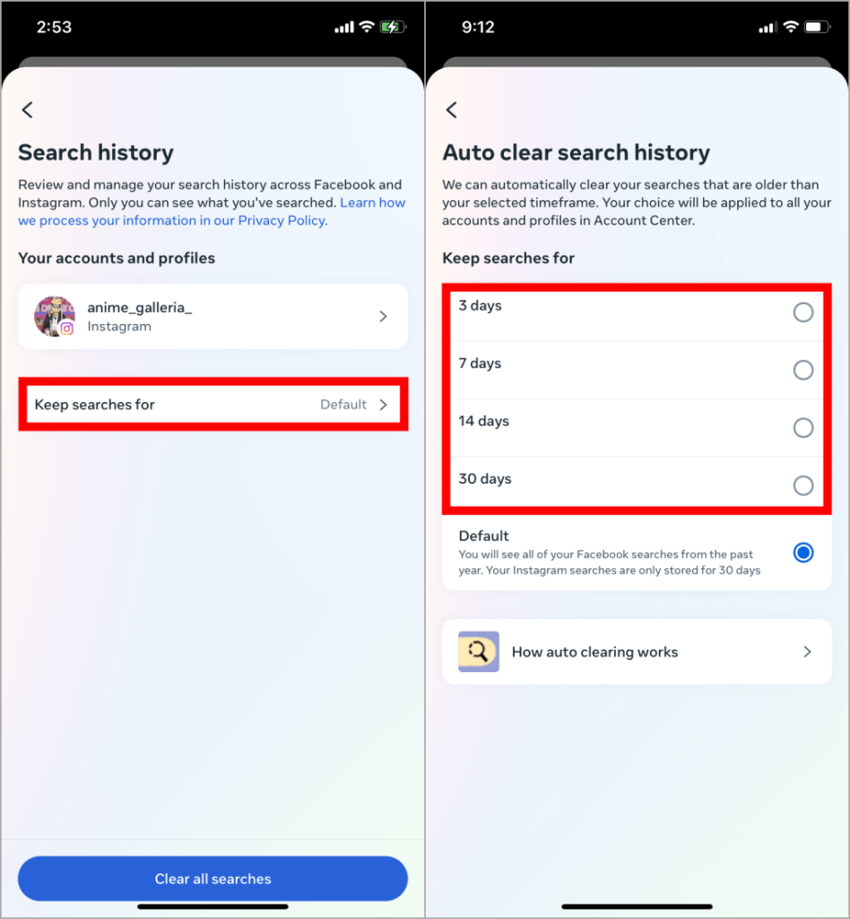 Si desea una manera sencilla de mantener su historial de búsqueda de Instagram limpio y ordenado, entonces el Método 5 es para usted. Al habilitar y configurar el borrado automático del historial de búsqueda, puede asegurarse de que su feed de Instagram se mantenga actualizado sin ningún esfuerzo manual de su parte.