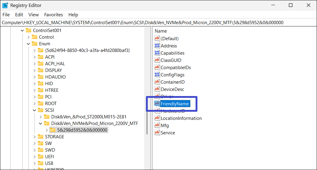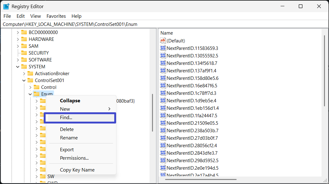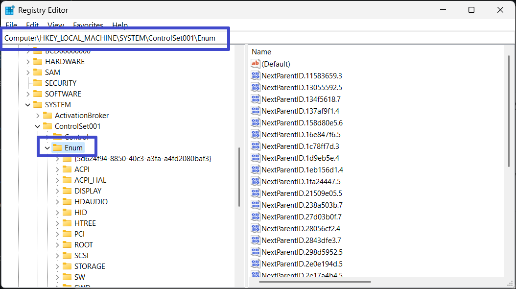 ComputerHKEY_LOCAL_MACHINESYSTEMControlSet001Enum