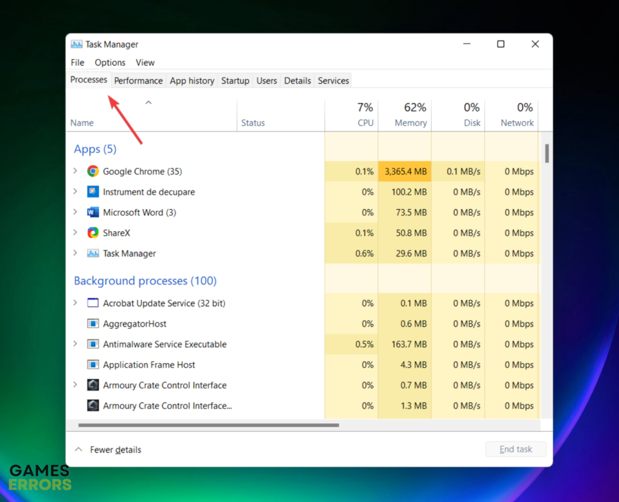 3. Haga clic en la aplicación/programa que no utiliza en este momento y luego elijaFinalizar tarea.