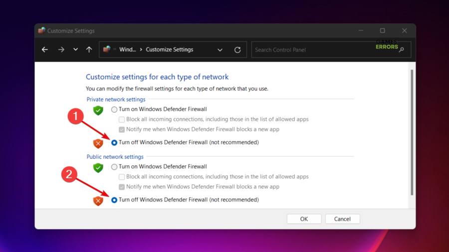 5. Deshabilite temporalmente el Firewall de Windows Defender