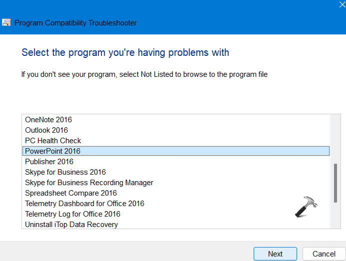 3.Ahora, el programa comenzará a detectar problemas. Una vez hecho esto, le mostrará una lista de software. Seleccione el programa con el que tiene problemas de compatibilidad. Luego, haga clic enPróximo.