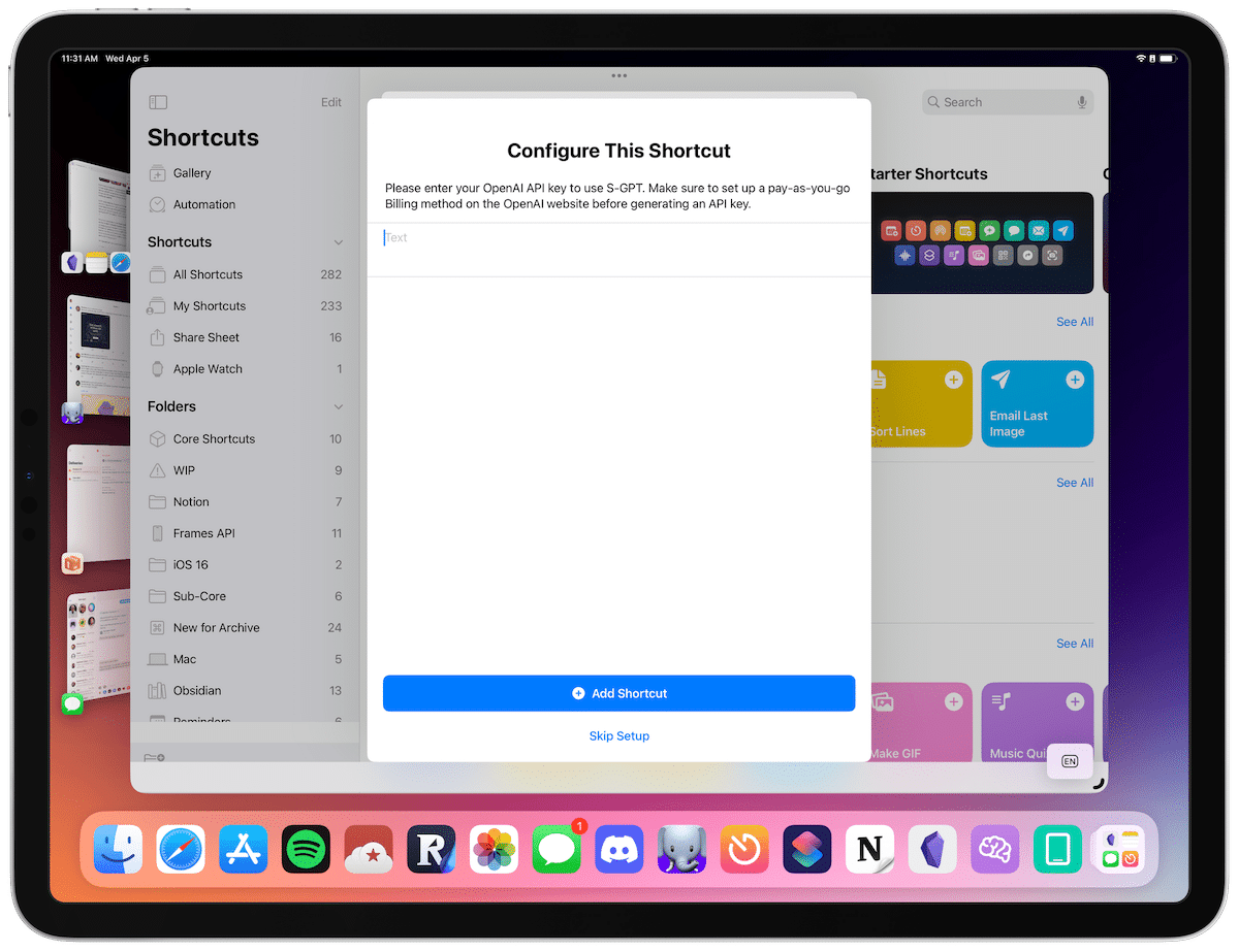 El nuevo acceso directo S-GPT permite a los usuarios conversar con ChatGPT a través del cuadro de entrada en sus dispositivos iOS, iPadOS y macOS. Admite el modo de conversación, por lo que ChatGPT conserva el contexto de todas las preguntas formuladas en la misma sesión. Pero S-GPT sólo admite texto, por lo que las respuestas se muestran en la pantalla y los usuarios también pueden exportar la conversación completa como una sola transcripción.