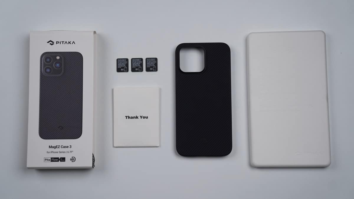 PITAKA afirma que MagEZ Case 3 es el más liviano porque la variante 600D tiene solo 0,95 mm de grosor y pesa 17,3 gramos, y la variante 1500D tiene 1,05 mm de grosor y pesa 22,3 g. La "D" aquí significa Denier, un indicador de la densidad del hilo de aramida. Las cajas 600D son más delgadas y livianas que las cajas 1500D.