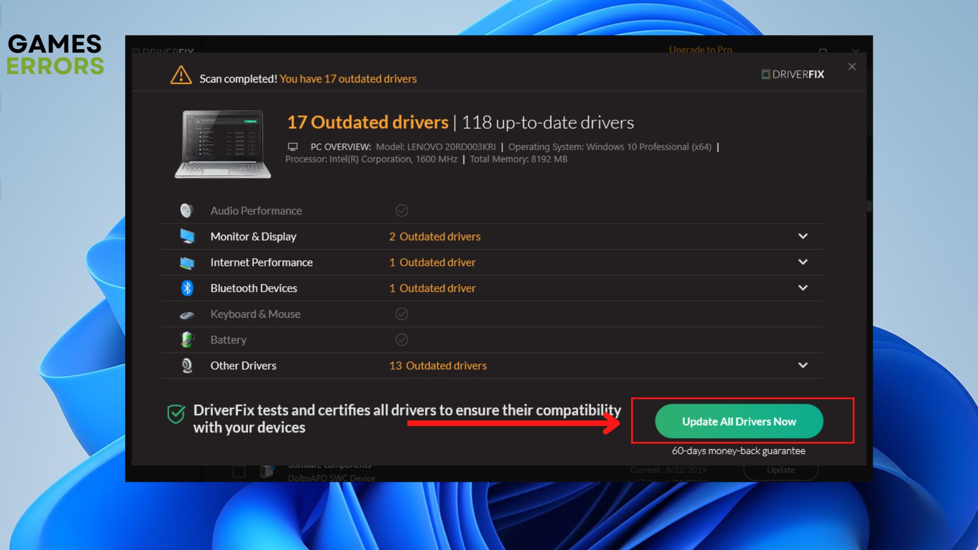 - Hacer clicActualice todos los controladores ahorapara corregir todos los errores.