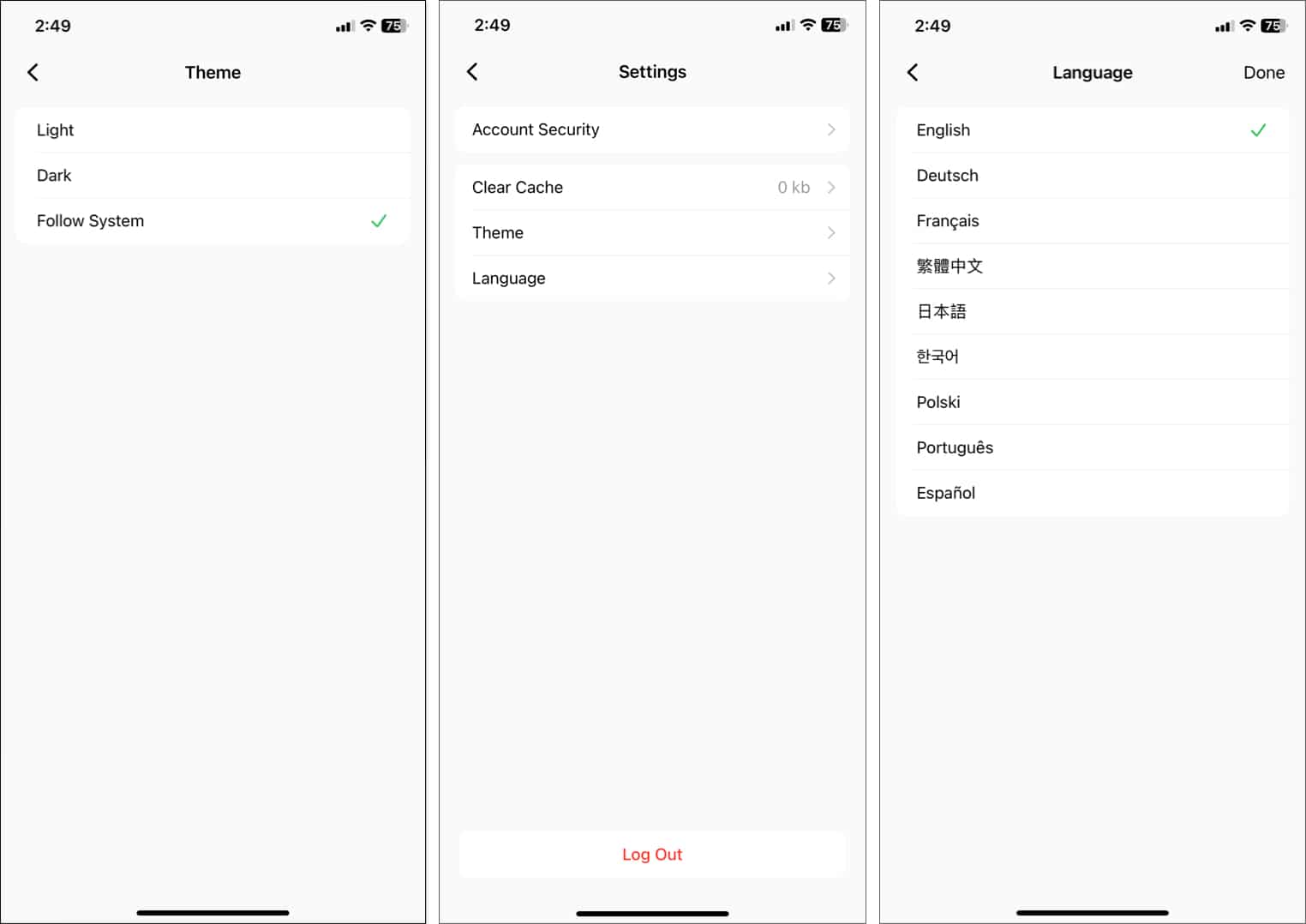 La mejor parte es que la aplicación está disponible en nueve idiomas y puedes cambiar el idioma de la aplicación individualmente desde la configuración. Además, puedes habilitar el modo oscuro para la aplicación. Lo que más me gustó es la función Borrar caché, que es poco común en las aplicaciones de iOS.