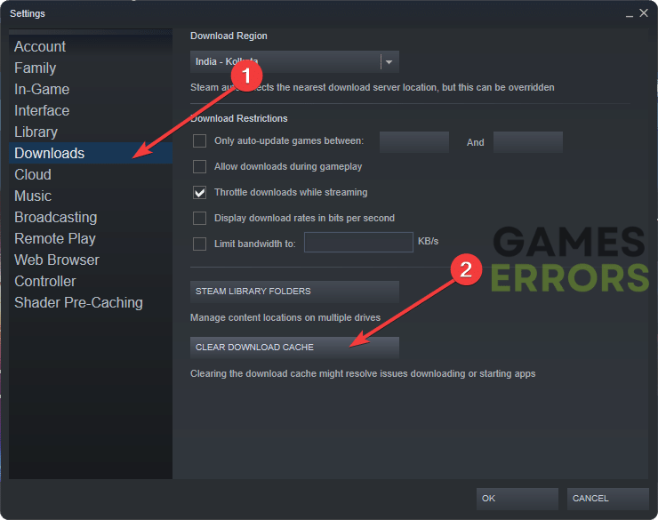 - Ir alDescargaspestaña y haga clic enBorrar caché de descarga.
