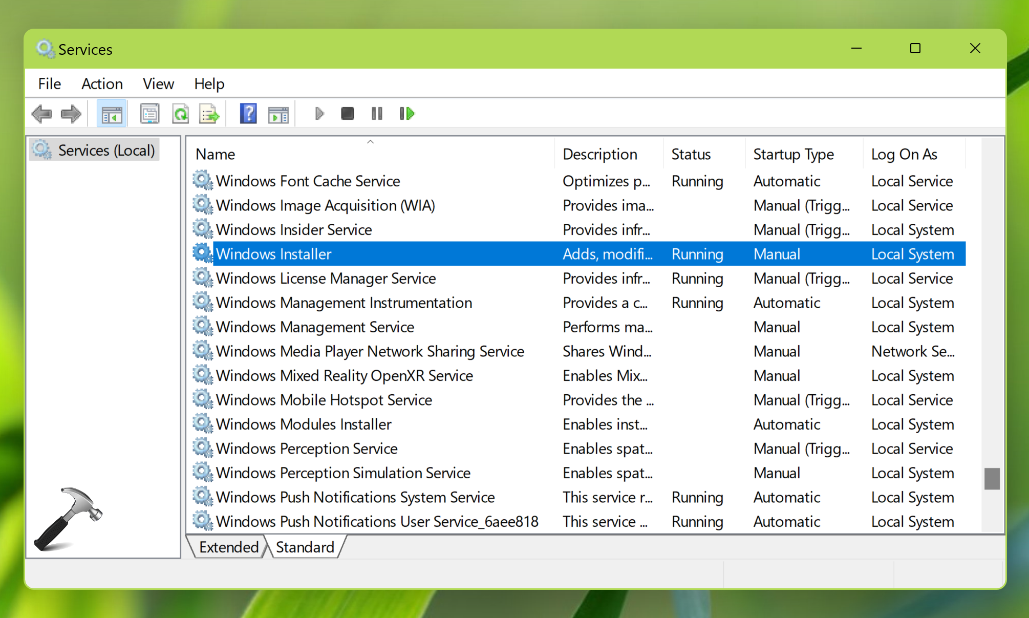 services.mscdominio. - En la ventana Servicios, desplácese hacia abajo y busqueInstalador de Windowsservicio. Dado que enfrenta este problema, es posible que no se esté ejecutando.