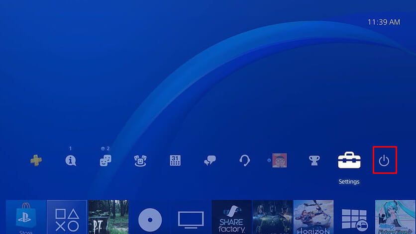 - En el menú de inicio de PS4, selecciona elFuerzabotón.