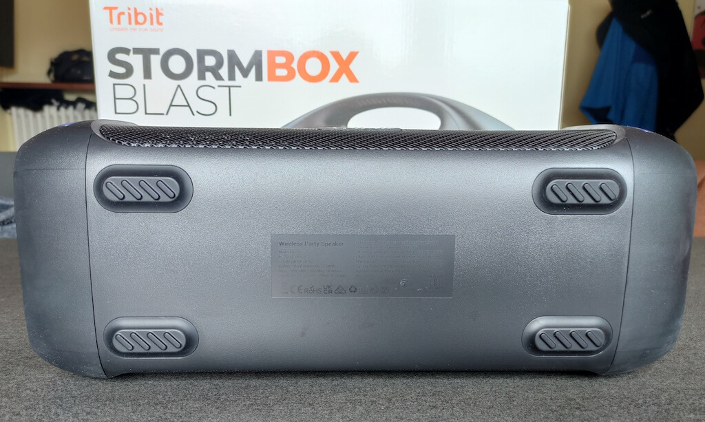 Descubrí que el mejor uso para este altavoz es encontrarle un lugar en la casa y dejarlo allí de forma permanente o semipermanente. La parte inferior del StormBox Blast está rematada con dos pies de goma que lo mantienen en su lugar.