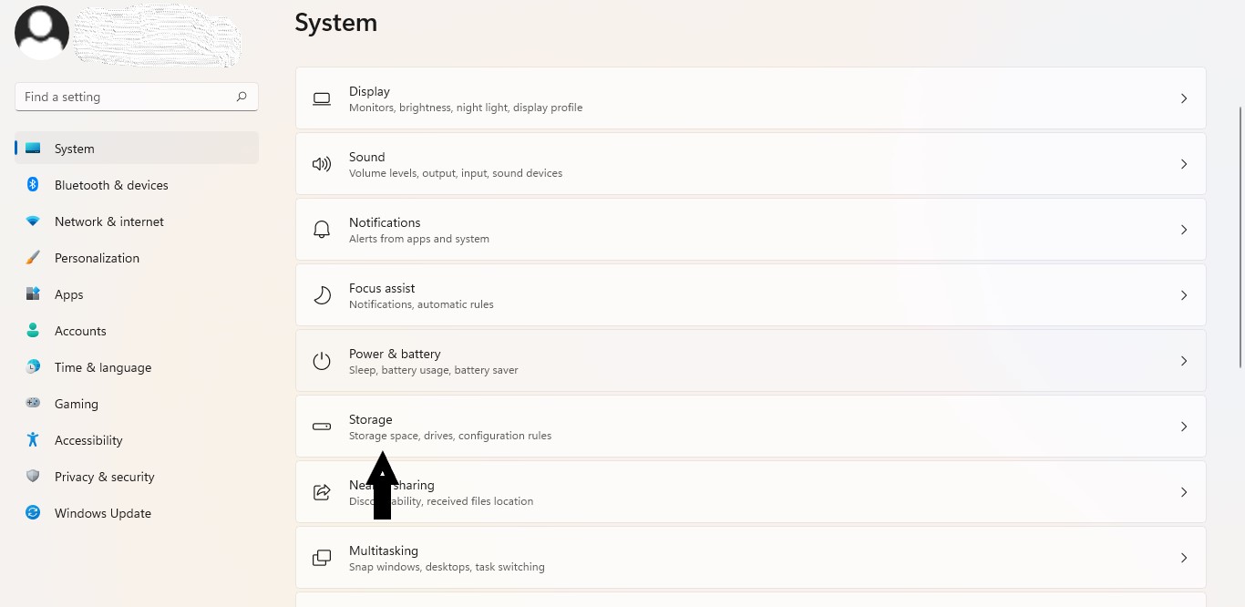 3. Haga clic enAlmacenamientodesde el lado derecho.