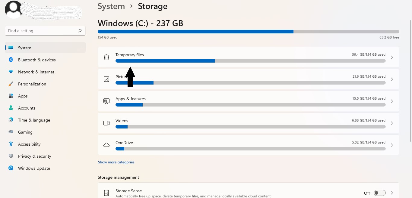 4. SeleccioneArchivos temporales.