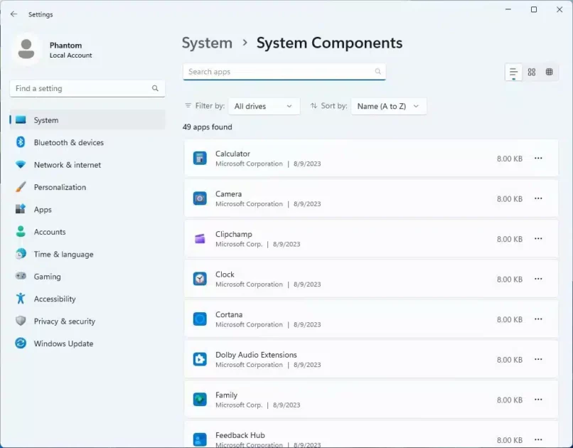 Microsoft agrega en secreto un nuevo "Componentes del sistema”página a la aplicación Configuración en Windows 11. Esta página permite a los usuarios ver y administrar componentes del sistema, como controladores, servicios y aplicaciones.