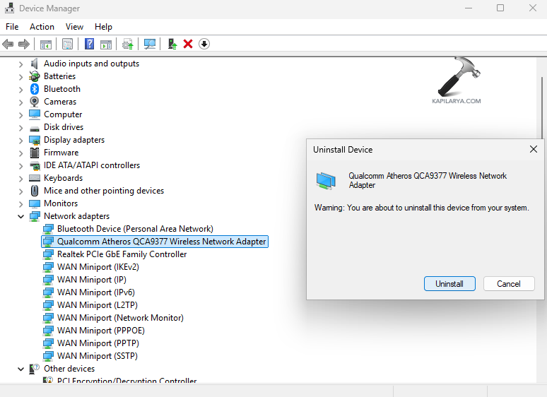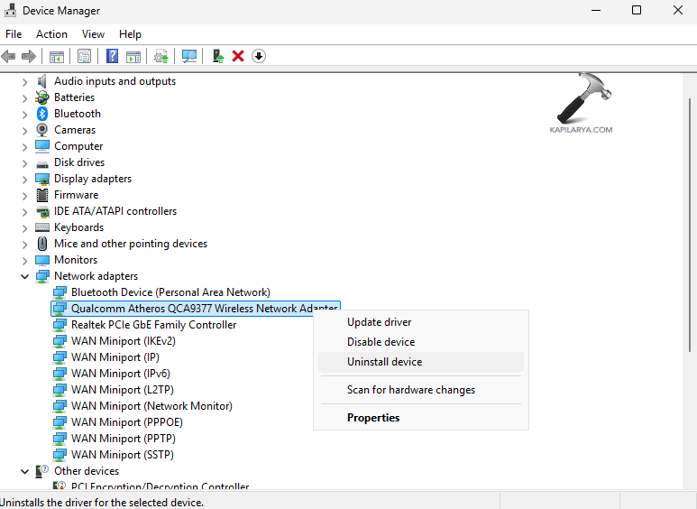 Paso 2-A continuación, seleccione Desinstalar dispositivo con un clic derecho en el adaptador inalámbrico.