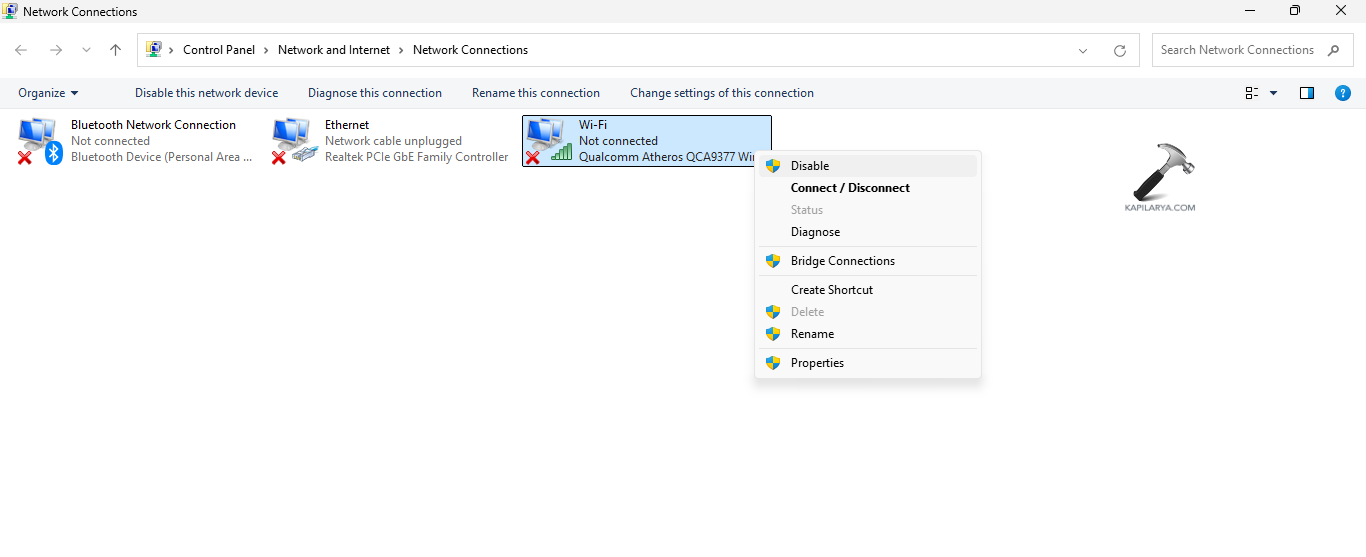 Paso 3:Por último, verifique el adaptador inalámbrico. Si está deshabilitado, habilítelo.