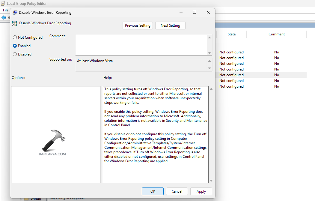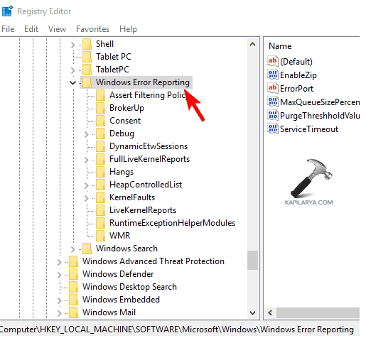 HKEY_LOCAL_MACHINESOFTWAREPoliciesMicrosoftWindowsWindows Error Reporting