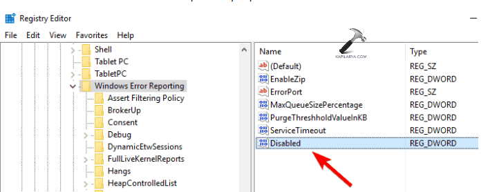 Paso 3-Ahora, en el panel derecho de la clave Informe de errores de Windows, busque Desactivar DWORD. Sin embargo, si el DWORD no está presente, créelo manualmente. Pero, si ya está presente, salte directamente al Paso 5.