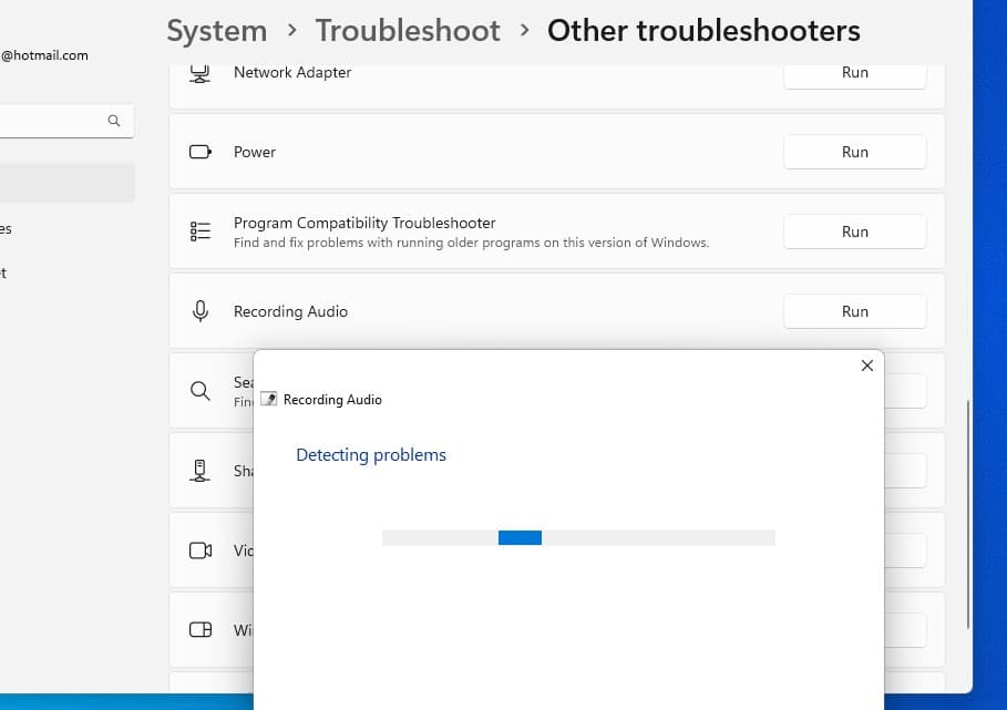 - Scorri verso il basso per individuare Registrazione audio e fai clic su Esegui accanto ad essa.