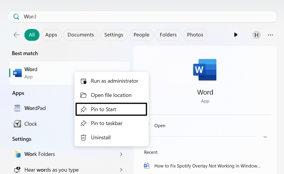 1.Colpisci ilTasto Windowssul PC e cerca l'app che desideri aggiungere ad Accesso rapido.