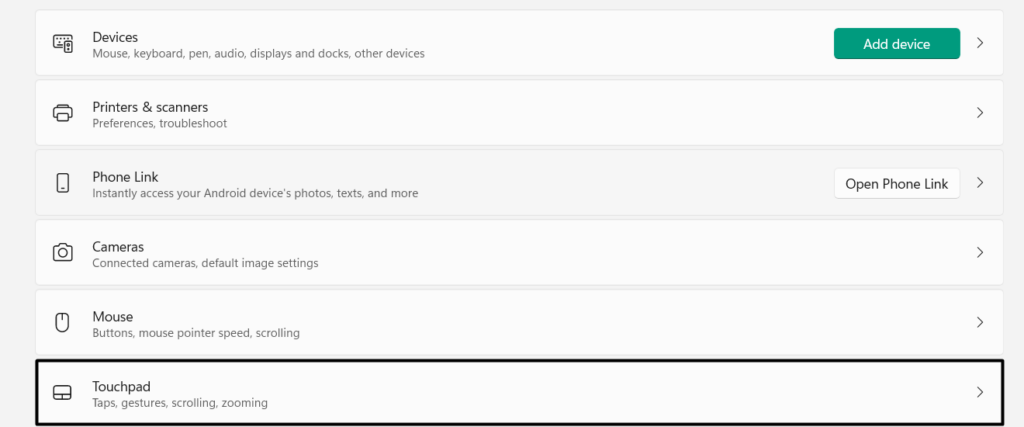 2.Spostati inBluetooth e dispositivisezione da sinistra, quindi selezionareTouchpadopzione.