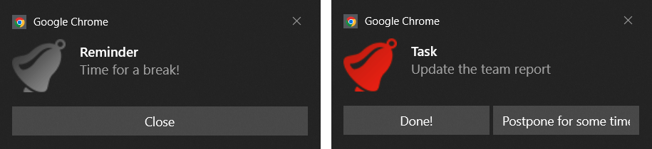 Quando l'estensione raggiunge l'orario prescelto, vedrai la tua notifica. Basta chiuderlo e “git-r-done”.