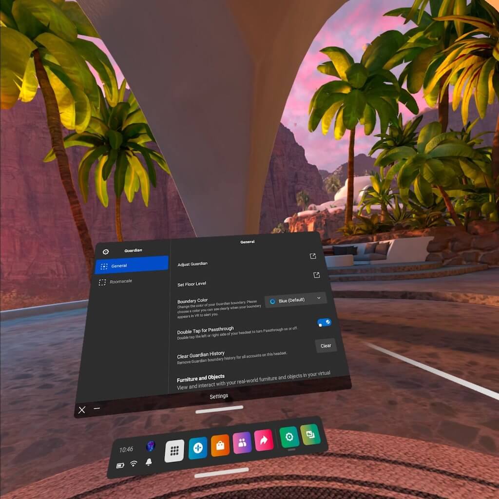 Il primo è abilitare Passthrough Home, che elimina l'ambiente virtuale predefinito e abilita il passthrough in ogni momento tranne quando si avvia un'app.