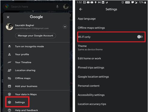 Tuttavia, l'opzione solo Wi-Fi è un ottimo modo per ridurre l'utilizzo dei dati, poiché impedisce all'app di funzionare mentre sei fuori dal suo raggio d'azione. Quando attivi questa impostazione, Google Maps raccoglierà nuovi dati finché non sarai collegato a una rete Wi-Fi. Se utilizzi i dati mobili, nulla verrà aggiornato. Per risolvere questo problema di mancato funzionamento di Google Maps sul tuo dispositivo Android, disattiva semplicemente questa opzione.