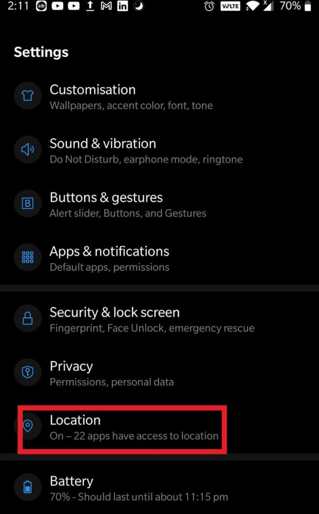 - Apri le "Impostazioni" del tuo smartphone e trova e tocca "Posizione".