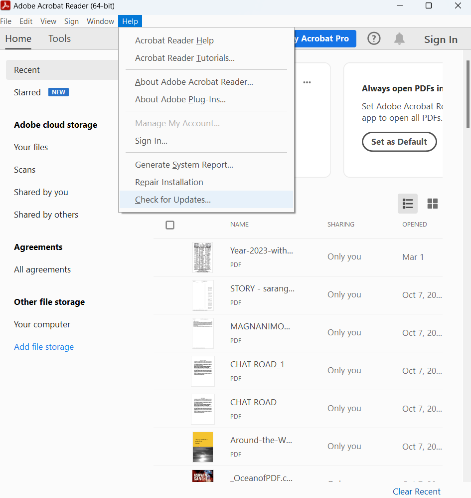 – Aggiorna Adobe Acrobat Reader o ripara l'installazione