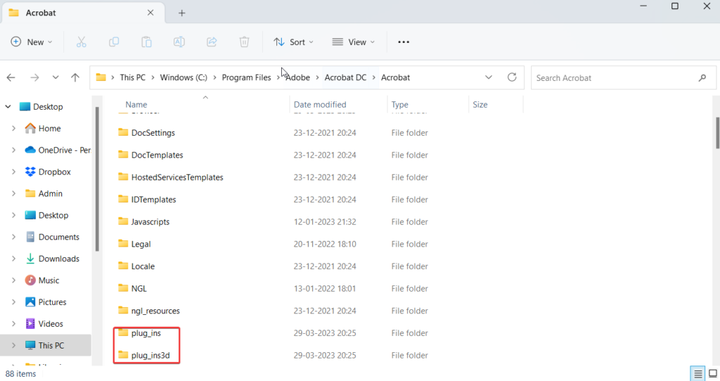 Hai iniziato a riscontrare l'errore dopo aver installato un plug-in di terze parti? Se sì, potresti volerli eliminare poiché possono causare l'arresto anomalo di Adobe Acrobat Reader –