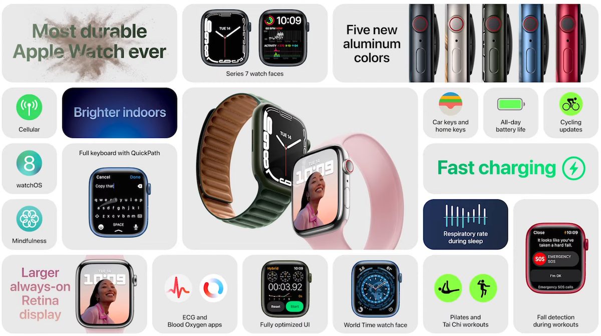 Apple Watch Series 7 è disponibile nelle misure da 41 mm e 45 mm e dispone di display Retina Always-On con bordi più sottili e più area dello schermo, tastiera QWERTY, durata della batteria di 18 ore per tutto il giorno, ricarica rapida e altro ancora. Il prezzo di Apple Watch Serie 7 parte da $ 399.