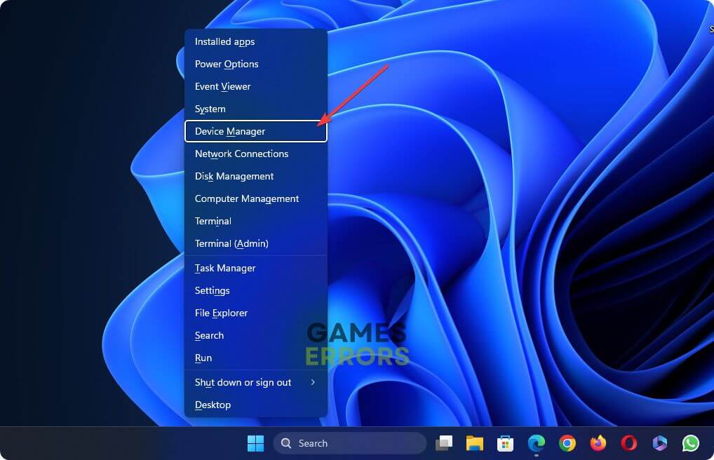 - Premi Win + X sulla tastiera e vai a Gestione dispositivi.