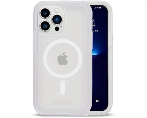 Poiché alcuni dei casi menzionati nell'elenco si concentrano maggiormente sull'essere robusti e durevoli, non possono permettersi lo spazio per fornire spazio ai magneti MagSafe. Per fortuna, questo caso di Encased ti ha coperto. Oltre ad avere il supporto MagSafe, questa custodia ha anche il supporto impermeabile MIL-Spec ed è classificata IP68.