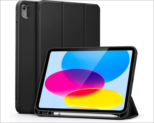 La copertina anteriore ripiegabile garantisce inoltre più angoli di visione. Oltre a questo, c'è anche un portapenne e il supporto per Touch ID. Nel complesso, questa è un'eccellente custodia leggera per l'iPad di decima generazione.