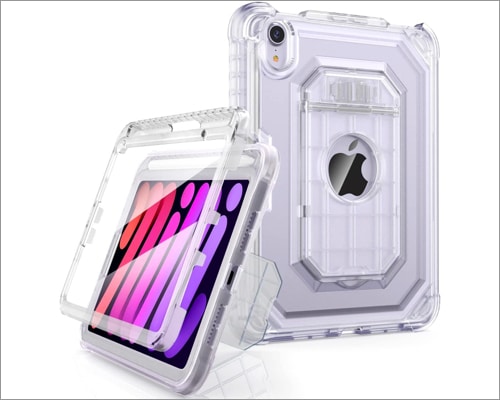 Tutto il suo corpo è in policarbonato antiurto e poliuretano termoplastico. Tuttavia, ha un doppio strato per proteggere ulteriormente il tuo iPad. C'è anche una scanalatura sul bordo per tenere in posizione la penna Apple. Invece di una copertura per lo schermo, questo viene fornito con una protezione rigida per lo schermo. Quindi non è necessario aprirlo per toccare lo schermo.