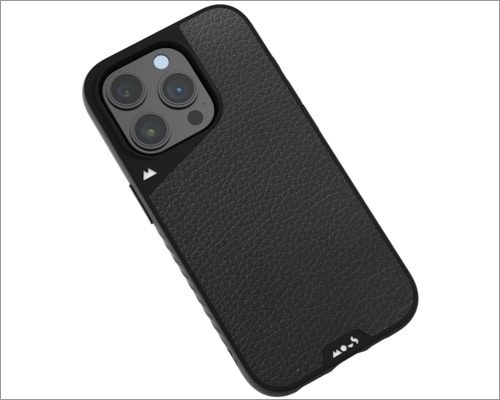 Realizzata in pelle nera di alta qualità e rinforzata in policarbonato, questa robusta custodia Mous presenta nervature ondulate per una presa migliore senza aggiungere volume alla tasca. Nel complesso, la custodia in pelle per iPhone 15 Pro Max di Mous è la scelta ideale per tutti coloro che amano una dose di protezione elegante e affidabile.