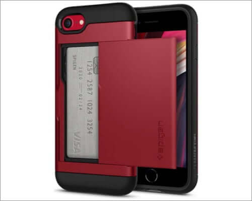 Questo portacarte si distingue per il suo look classico e minimalista. Ha due slot per schede ed è compatibile con la ricarica wireless, rendendolo un modo pratico per proteggere il tuo iPhone SE di seconda generazione. Tuttavia, dovrai rimuovere le carte dalla custodia prima di utilizzare la ricarica wireless.