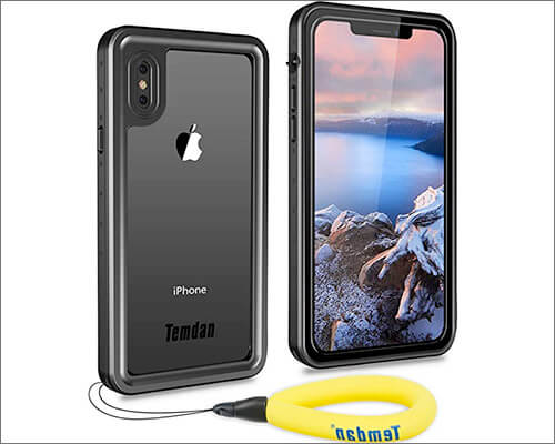 Temdan presenta una custodia impermeabile che offre molteplici vantaggi. Oltre allo standard di impermeabilità certificato IP68, questa custodia è dotata di cinturino da polso e cinturino galleggiante; quest'ultimo mantiene il tuo iPhone fluttuante in superficie.
