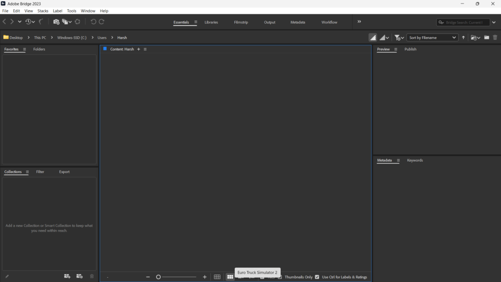 Poiché si tratta di un'app di gestione dei file, ti consente anche di gestire facilmente tutti i file sul tuo PC. Quando apri Adobe Bridge sul tuo PC, essomostra tutte le cartelle principali sull'unità di archiviazione. Utilizzando l'app Adobe Bridge, puoi trovare i file sul tuo PC in base al nome, al tipo, alla data di creazione e alle dimensioni. Puoi anche cercare file per parole chiave e dimensioni.