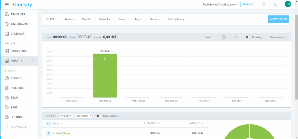Ha anche uno dedicatoRapportisezione per visualizzare tutte le statistiche di gestione del tempo in un unico posto. È un ottimo modo per sapere dove puoi migliorare ed essere più produttivo. Nel complesso, è una grande utilità per chi ama tenere traccia di ogni minuto della propria giornata.