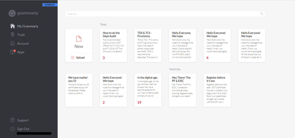 Grammarly è un popolare assistente alla scrittura che trovaerrori nella tua scrittura, li evidenzia e ti consente di correggerlicon un solo clic. Non solo trova errori nella tua scrittura, ma rende anche perfetta la tua scrittura correggendo la struttura della frase, il tono e altro ancora.