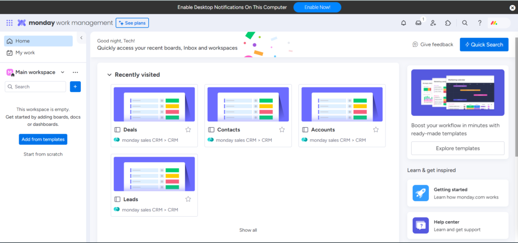 Monday.comè unpiattaforma di gestione del lavoro all-in-oneche ti aiuta a svolgere facilmente diverse attività aziendali. In particolare, è iniziato come uno strumento di gestione del lavoro online ma poi si è trasformato in una piattaforma di lavoro all-in-one per gestire vendite e relazioni con i clienti, risorse umane, sviluppo software, operazioni aziendali e molti altri.